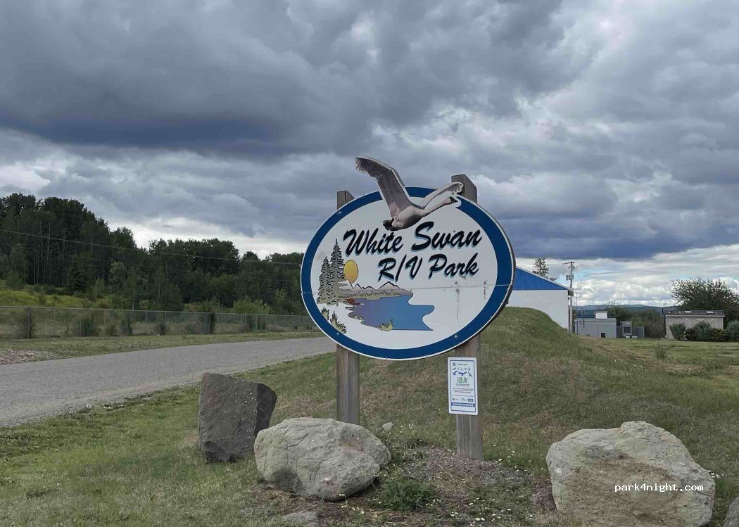 White Swan Park! Camping sur le lac, aires de pique-nique, Feuerringe, toilettes à l’eau, aire de jeux pour enfants, plage, 2 nuits gratuites, pas d’ombre, laverie automatique avec douches chaudes.