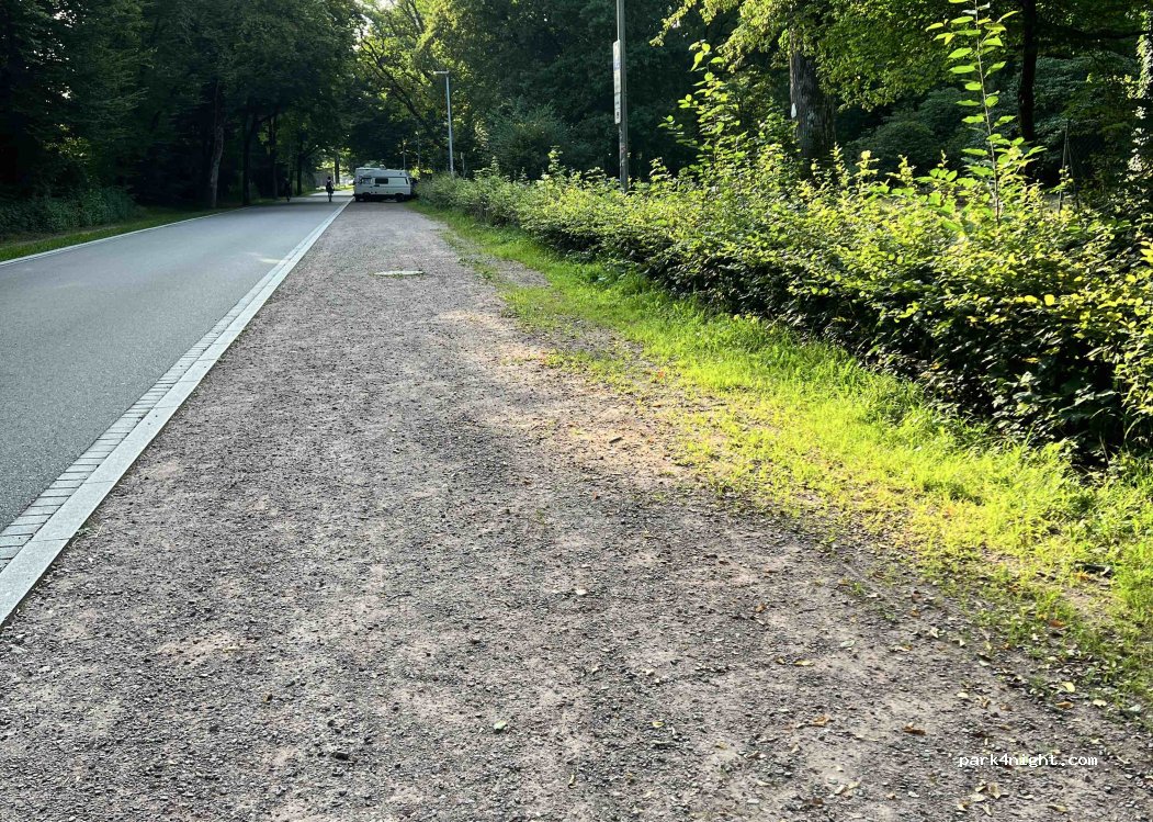Naja... Parkplatz würde ich es nicht nennen. Man kann jeweils ausschließlich entlang des schmalen Fahrbahnrandes parken. Im Waldgebiet sogar nur bis 2,8 Tonnen, wie Schilder dort besagen! Also weder Womos noch Vans die größer als ein VW-Bus sind! - In der "Fahrradstraße", außerhalb vom Wald, gleich neben dem Bahnübergang, gegenüber vom Wartehäuschen, darf man auch bis zu beliebigem Gewicht parken. Dort standen, während Corona, viele Womos von weit her, auch mit Fahrrädern. - Man sollte dort allerdings die Außenspiegel, zur Straße hin, einklappen. Sonst sind die weg! *lach* Viele Radfahrer fahren dort den ganzen Tag über entlang. Campingverhalten ist auch nicht angebracht, schon garnicht während Corona! Aber man kann dort gut stehen und vielleicht auch mit dem Rad oder zu Fuß die Altstadt besuchen. - Schlafen kann man dort nicht! - Das Dingeln der Bahnschranke ist Tag- und Nacht zu hören und raubt einwm den letzten Nerv! Dagegen hört man die Züge so gut wie garnicht.