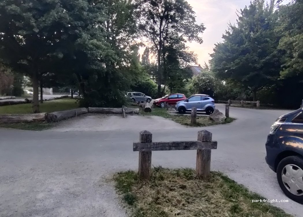 Parking pour vehicule maxi 6m. Sinon emplacement très agréable au début d'un grand parc avec allées, étangs . Beaucoup de monde le week-end, nombreux pêcheurs et propriétaires de chiens en ballade .