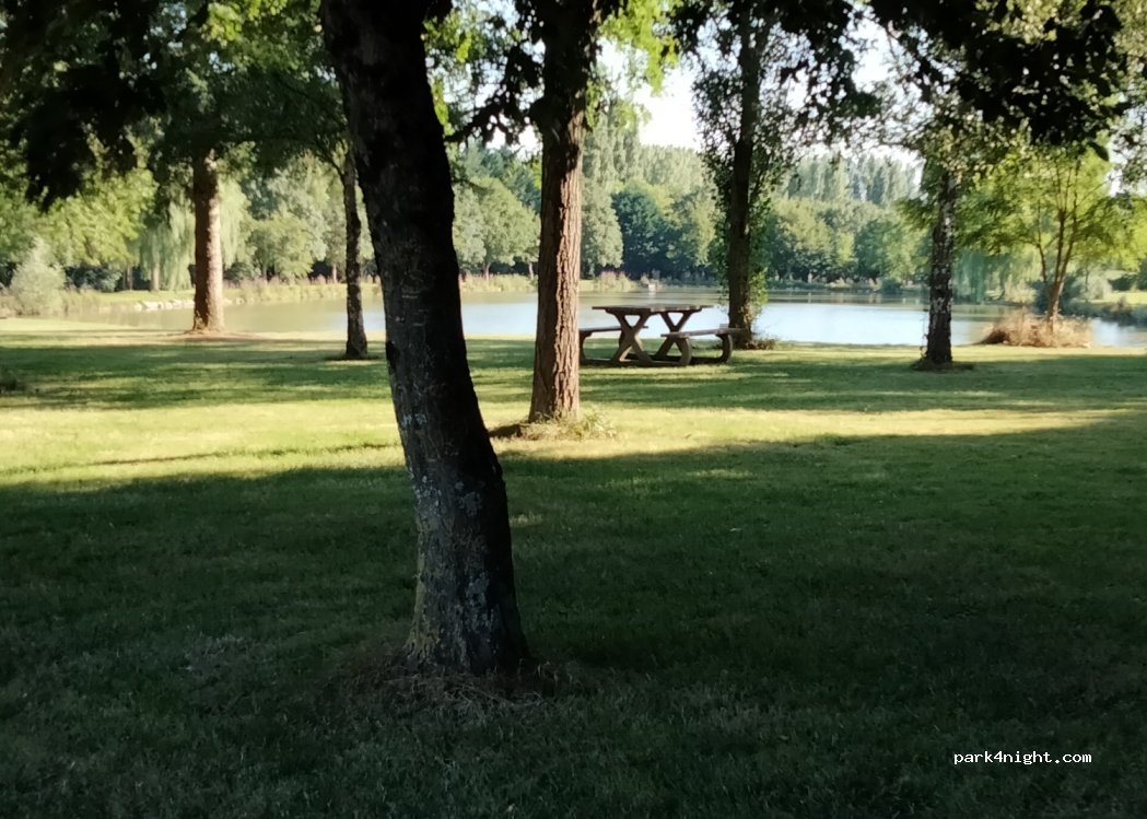 superbe aire camping car gratuite. plan d'eau,parc animalier,aire de jeux enfants, parcours santé. possible de faire tout le tour plan d'eau et parc animalier. un grand merci à la commune pour ce super accueil . tables de pique-nique ,ombre sous les arbres