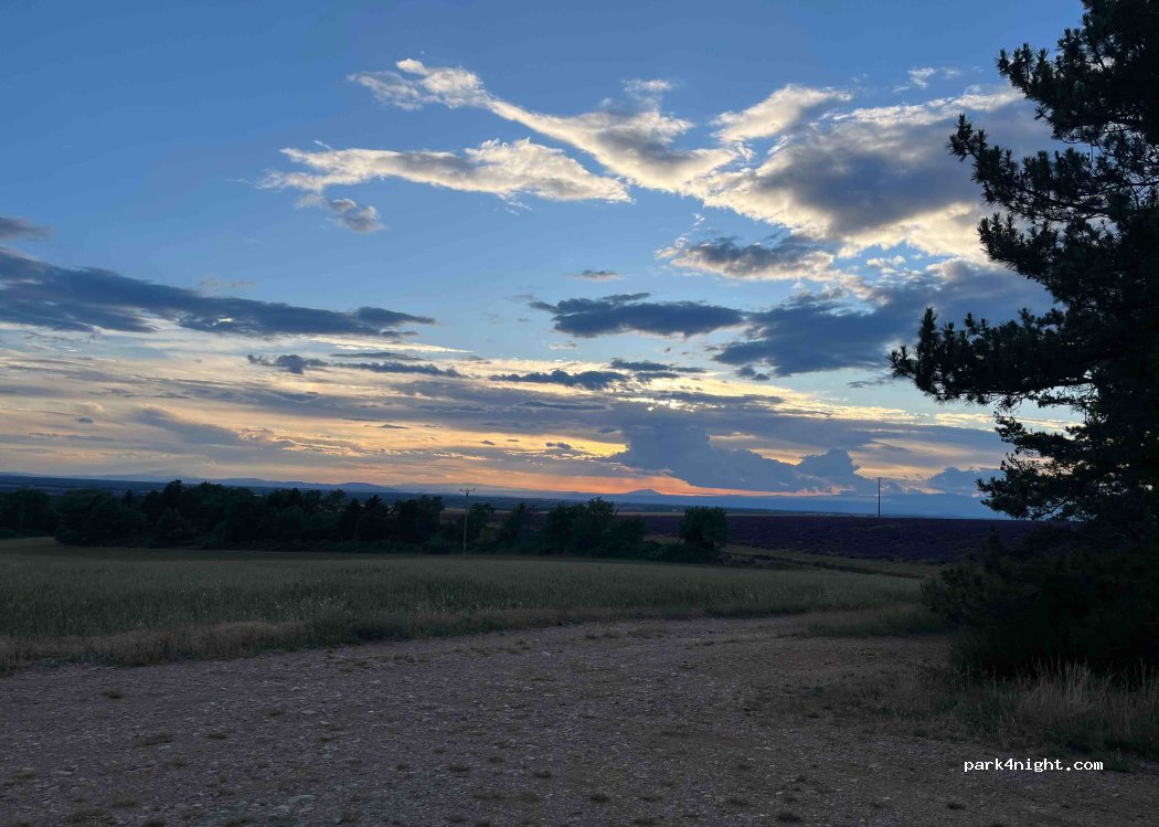 An extraordinary place at the top of the hill. Great views of lavander fields. We share that place with another RV next to us. Only place for 3-4 camper vans. If you decide to go you’ll find an amazing sunset.