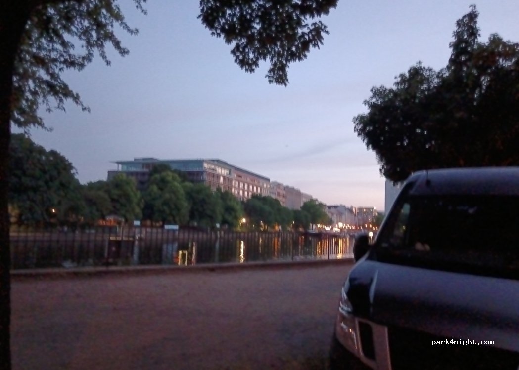Ein schöner Platz direkt an der Spree. Ich habe hier von Samstag zu Sonntag übernachtet und es ist voll okay. Meinen Caddy habe ich hier um 21.00 abgestellt, ab 21. 00 parken frei und Sonn-und Feiertage ist das parken auch frei.....
