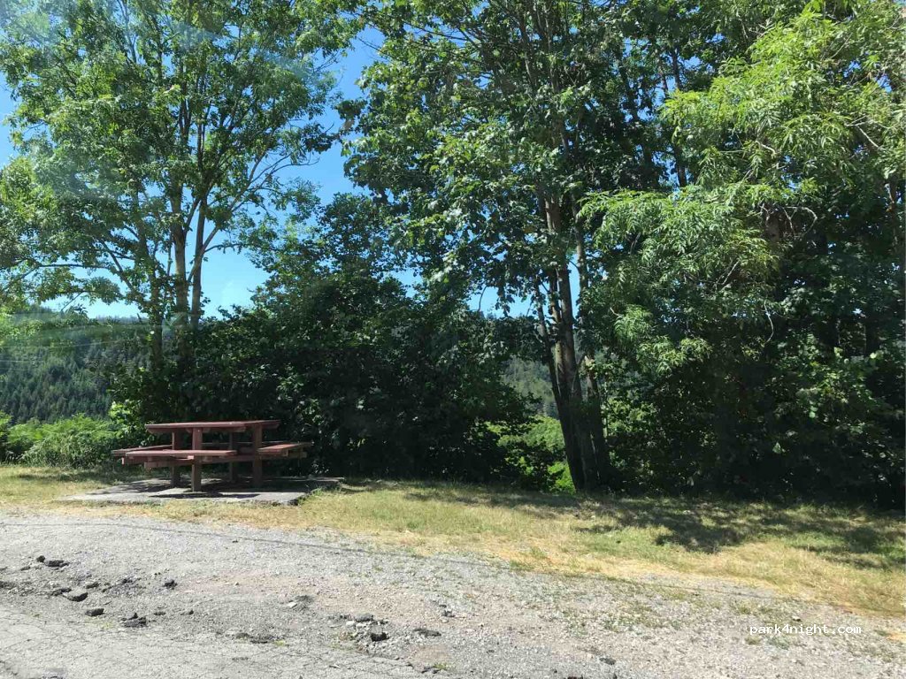 Parkplatz mit Picknicktisch nic. Ausgangspunkt um den großen Sehnenwasserfall zu sehen. Perfekt für einen Kurzurlaub