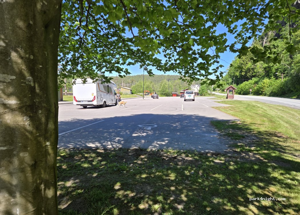 Voici un grand parking juste à côté de la destination setesdalbanan.tolles. Une route passe par. Vous pouvez entendre les voitures mais pas si mal. 24 heures de stationnement autorisé!