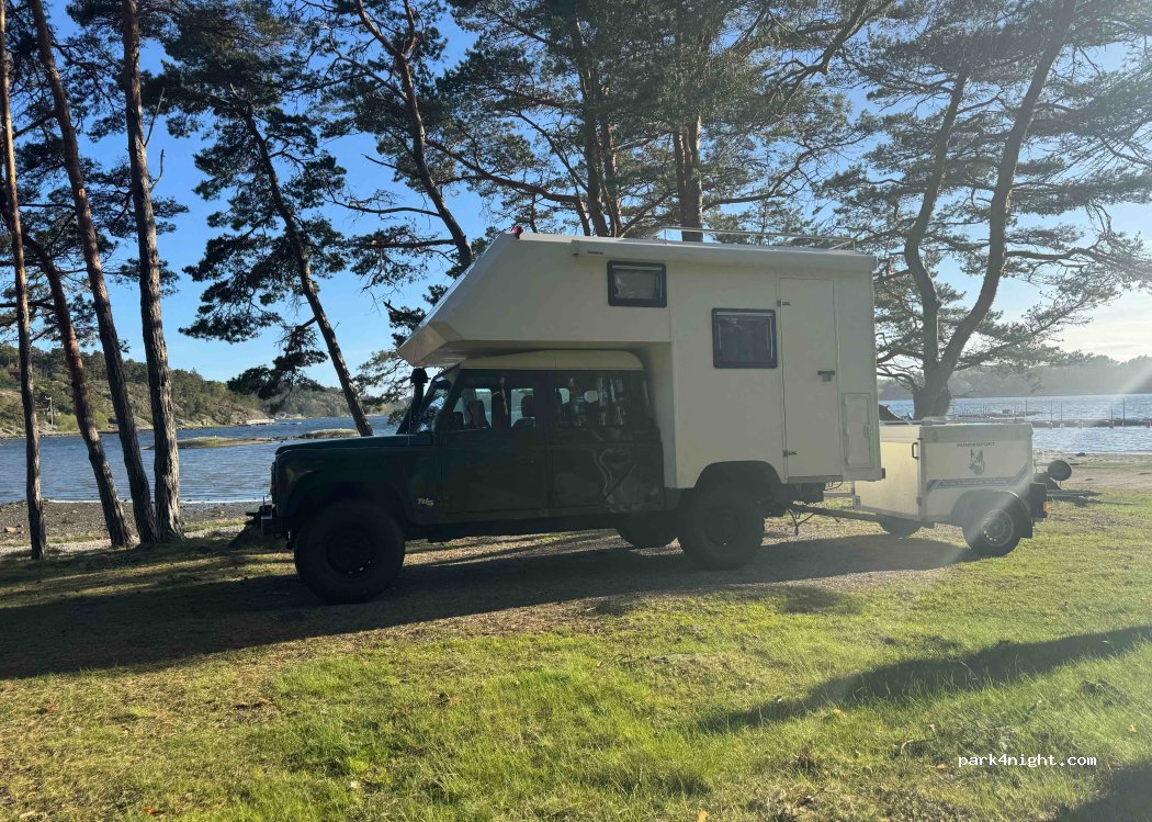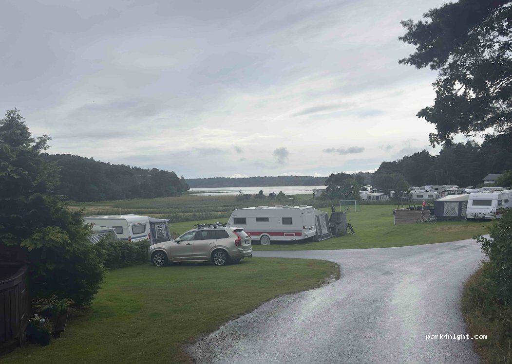 Wenn man erstmal durch den Dauercampingbereich durch ist kommt man zum sehr schönen Campingbereich für Weiterreisende unter Nadelbäumen direkt am Wasser. Der Besitzer ist sehr nett, spricht gut Deutsch und Englisch. Wir haben 650 SEK für 2 Nächte mit Wohnwagen und Strom bezahlt. 1 Stern Abzug weil es keine Grauwasserentsorgungsstation gibt und der Strand bzw. das Wasser nicht zum Baden einlädt.