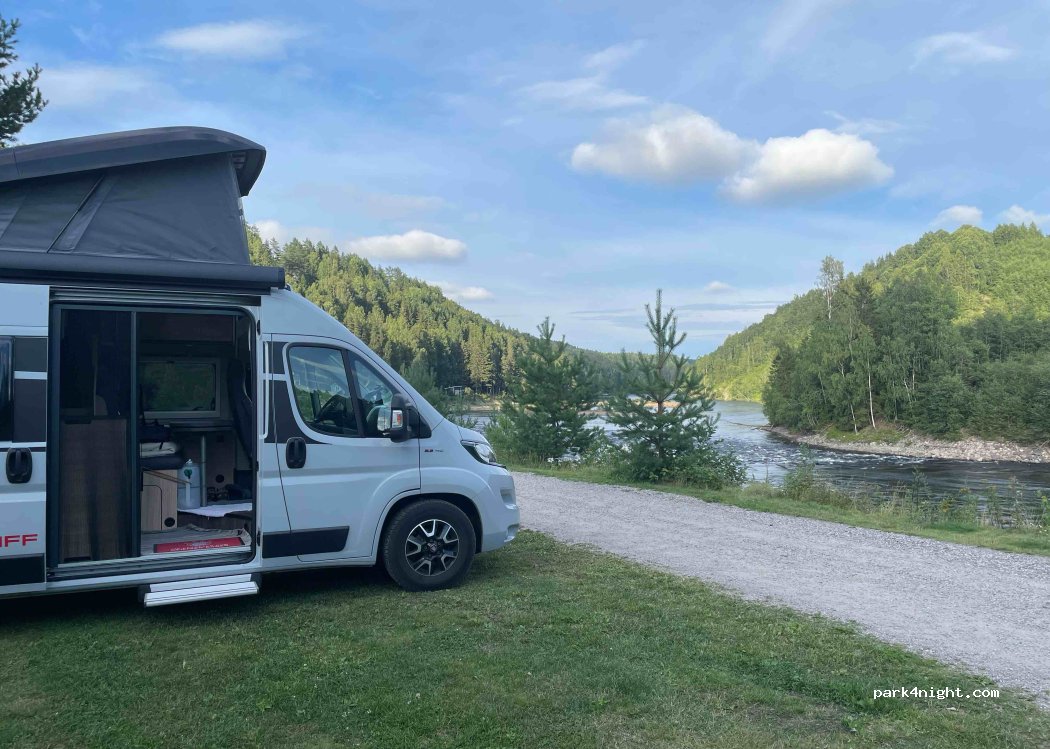 Sehr schöner Platz direkt am Fluss mit der Möglichkeit zum Schwimmen, Angeln und Wandern. Sehr ruhig und mitten in der Natur. Das Rauschen der Stromschnellen ist alles was man hören kann. Zum entspannen sehr zu empfehlen!! Preis pro Übernachtung mit dem Wohnmobil inklusive Strom 300 SEK. Sanitäranlagen vorhanden aber nicht genutzt. Sehr zu empfehlen!!