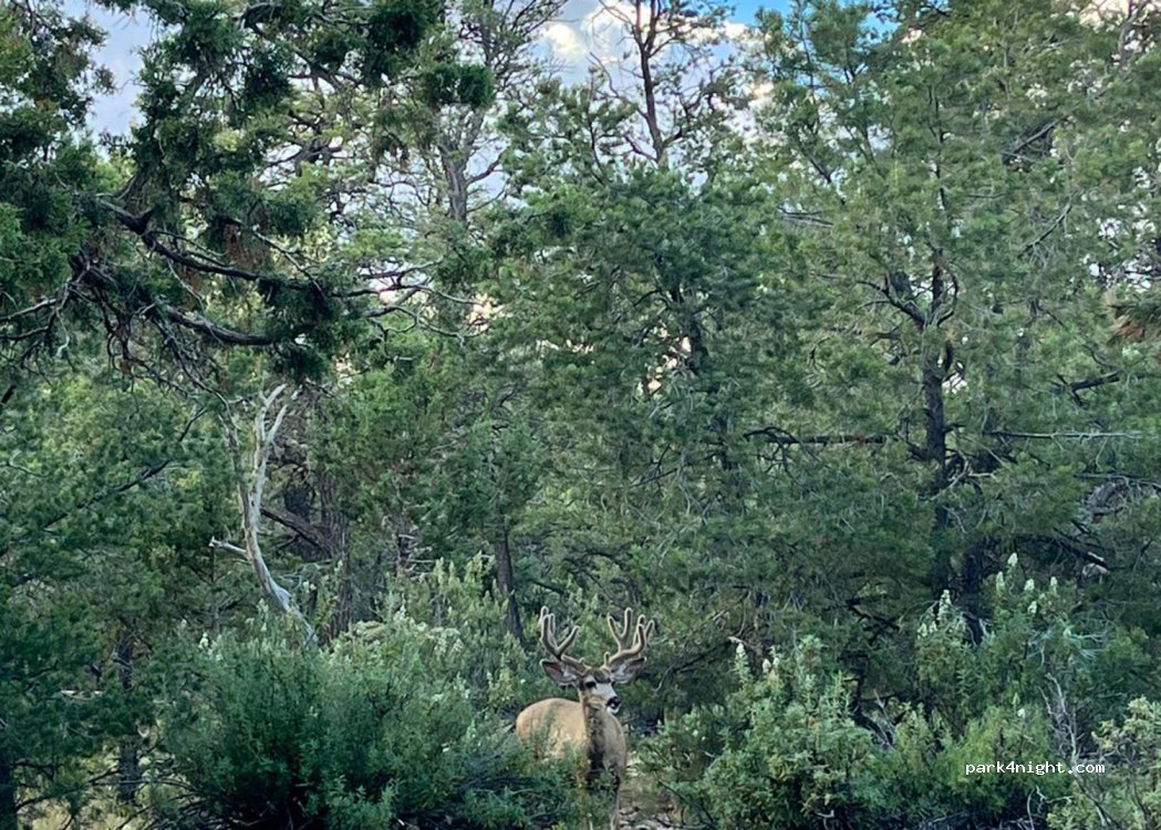 superbe camping sous les pins, calme, ombragé, à 20 min à pied du grand canyon pour coucher ou lever de soleil. les wapitis se promènent aux abords sans être effrayés.