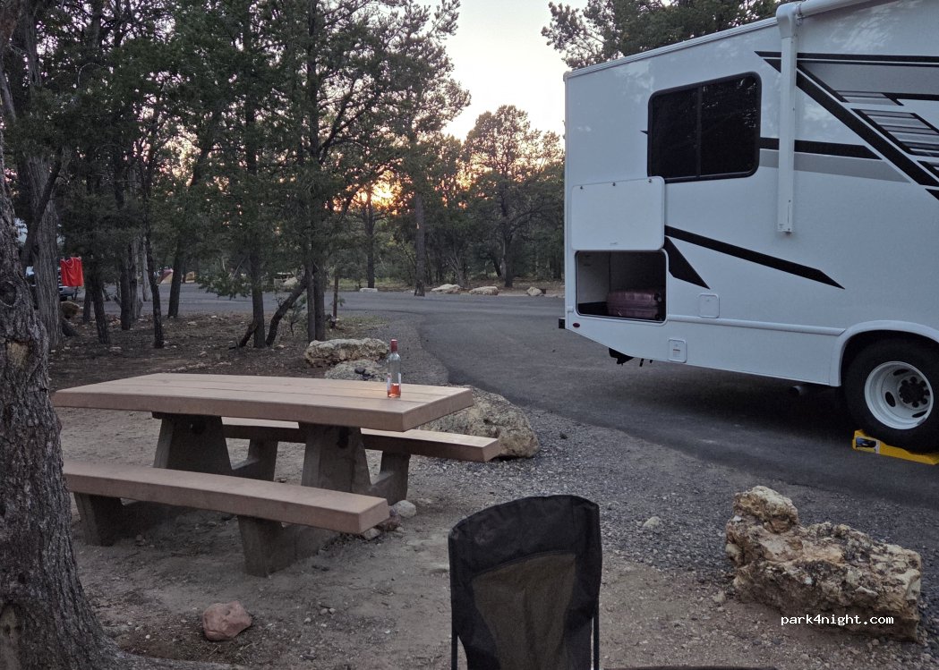 Campground du Grand Canyon avec des assez grands emplacements. Pas d’électricité ni eau mais des toilettes et une dump station gratuite à côté. Nous avons dû réserver à l’avance et avons payé 18$ la nuit. Même en basse saison, il y a quand même du monde.