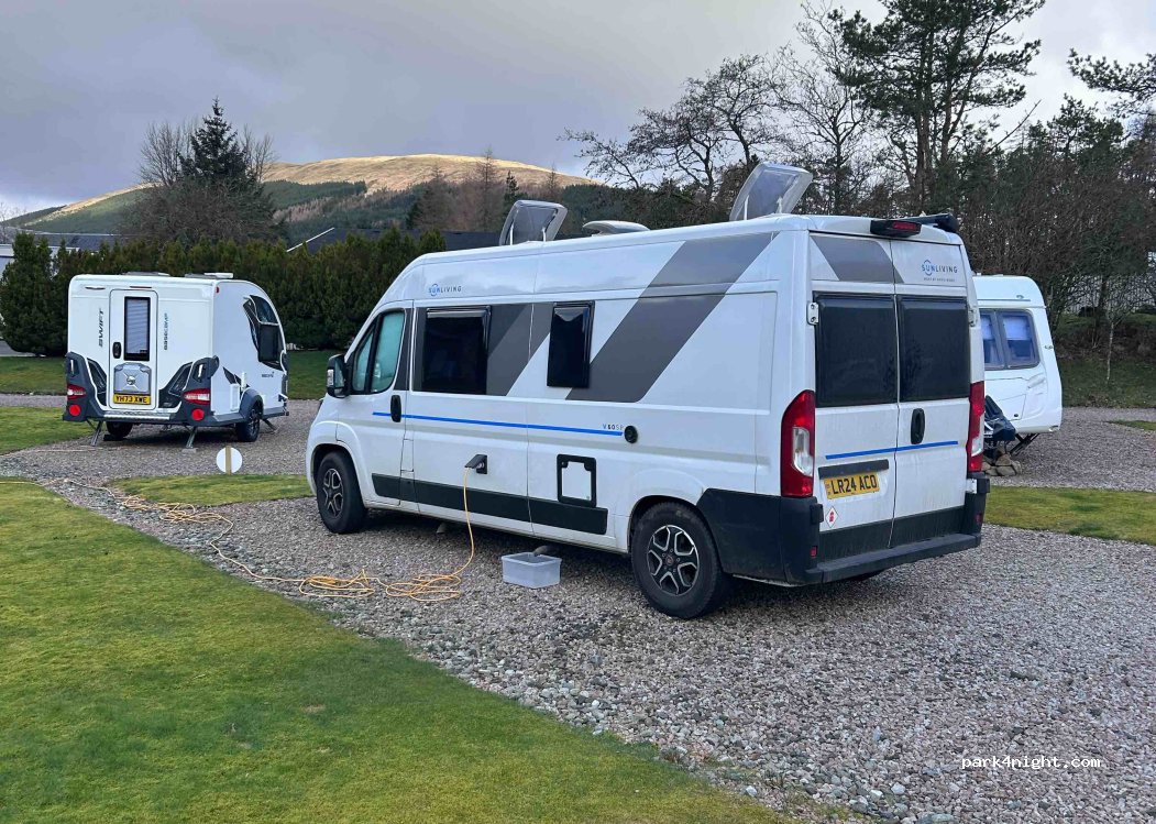 Nice site for a stopover on the way to Oban. Hard standing pitch. Facilities clean and tidy, nice owner who accommodated us arriving a little late. Nice path straight onto the West Highland Way for an early morning dog walk. Noise from the road was not an issue.
