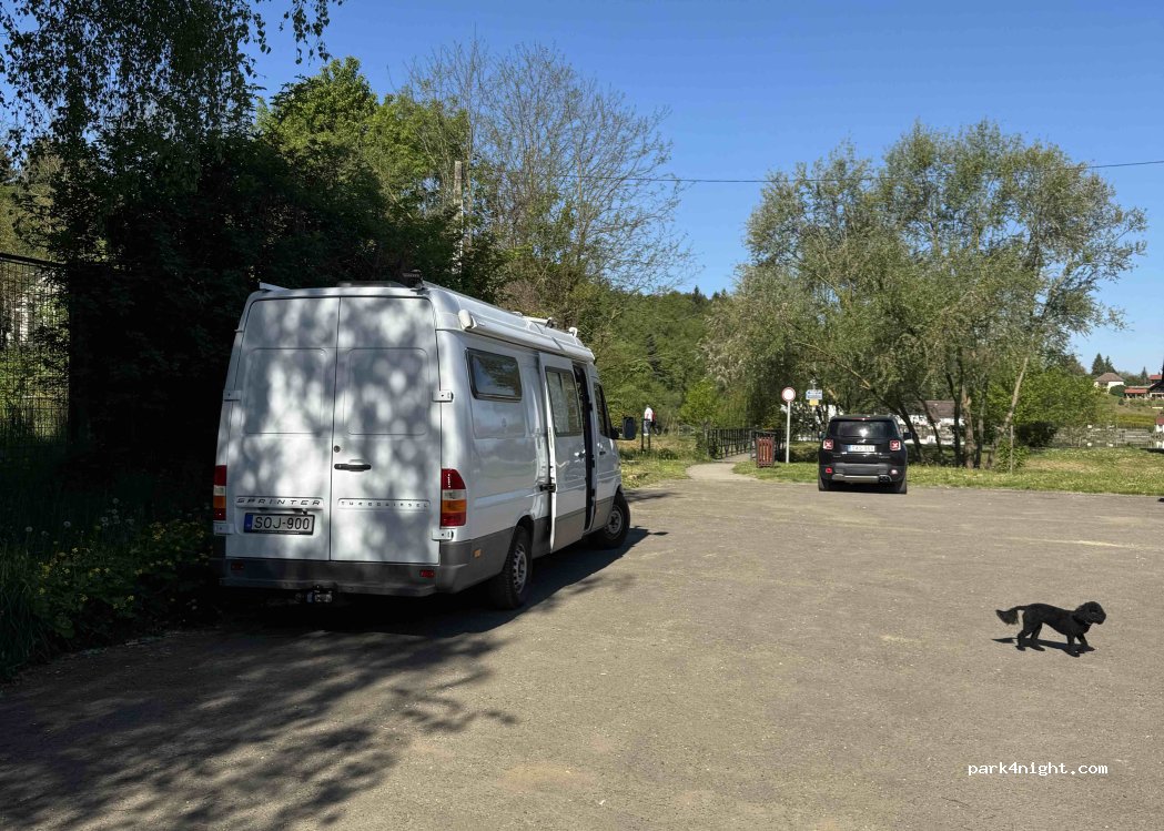 Das Parken ist für große Wohnmobile sehr einfach zu erreichen, es befindet sich 20 Meter nach dem Campingplatz. Sehr ruhiger Ort, keine Belästigung, sicher. Es gibt den Teich für den Spaziergang, keine Bequemlichkeit