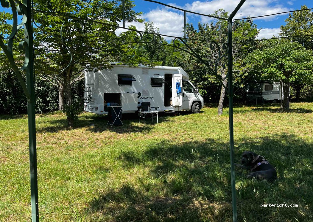 Accueil vraiment sympathique, vraiment une ambiance familiale. Un peu de circulation en journée mais nuit calme. Tous les services à disposition, même la piscine. Chiens acceptés à 1 €, et 5,5€/personne. Électricité 4€. Je recommande vivement.