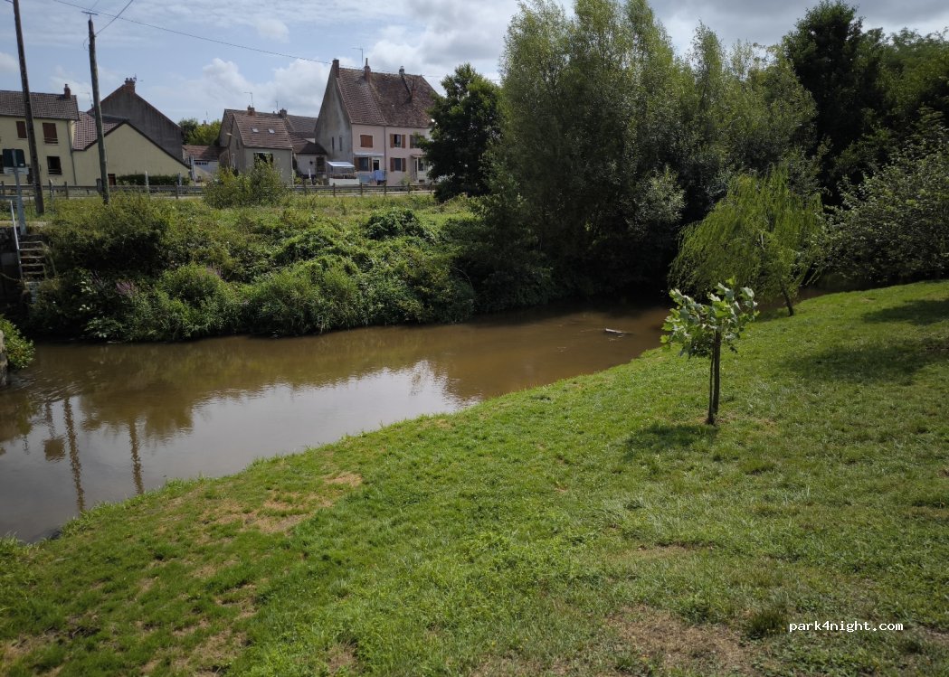 Endroit charmant et bien ombragé, adapté à une étape pour un fourgon.