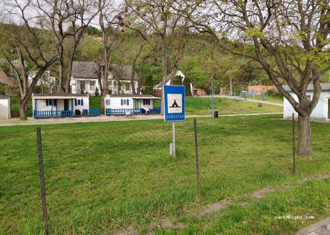 Direct aan de Donau, aan de strandpromenade en direct naast het zwembad. Je staat op een vlakke weide onder hoge bomen met uitzicht op de Donau. In een zeer rustige omgeving. Eenvoudig maar schoon sanitair. Prijs voor een camper en twee personen 3600 HUF, inclusief elektriciteit. Sterk aanbevolen. Op slechts een paar minuten lopen van de brug over de Donau ligt het uitstekende visrestaurant "Halazcsarda"