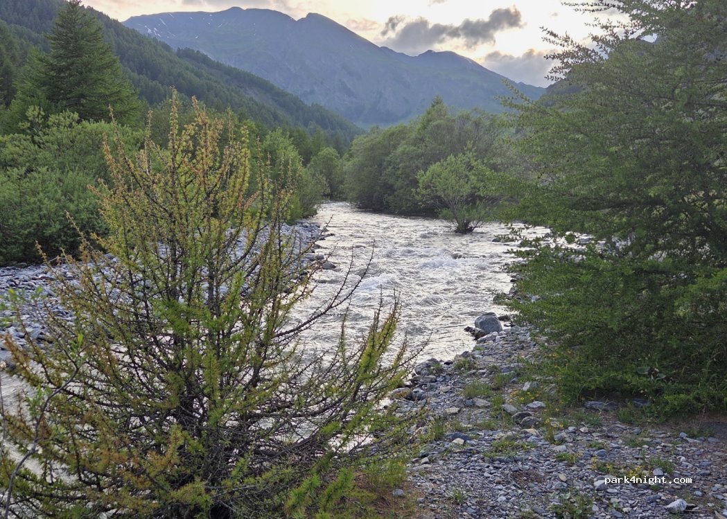 il posto è fantastico immerso tra le montagne con il fiume che corre e la cascata argentera a 2 passi l accesso lo si ha in 2 punti il primo è adatto a tutti i mezzi stradina in ghiaia che porta in riva al fiume l altro è più adatto a van non grandi, la strada è stretta e un pò sconnessa ma fattibile unica pecca un pò rumoroso avendo la strada del Colle della Maddalena subito sopra
