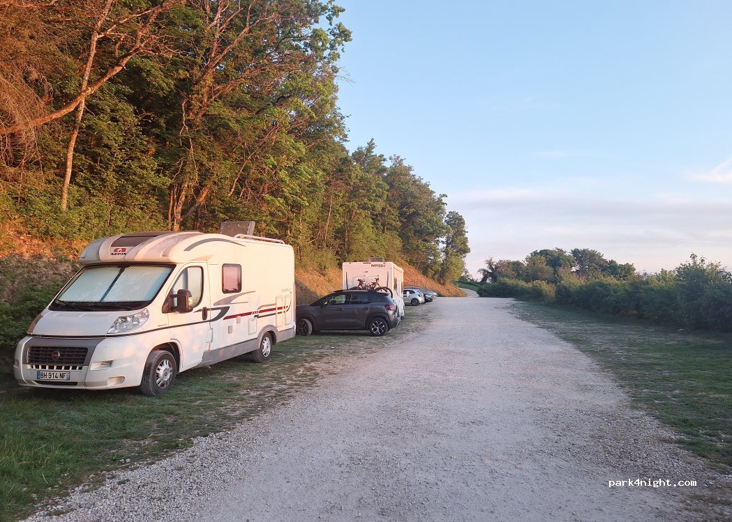 Parking sympa pour passer la nuit belle vue beau coucher de soleil. Nuit calme, nous sommes arrivés à 21h30 le dimanche il y avait 3 camping car Nous avions suffisamment de place pour être espacé les uns des autres. Petit bémol pour les toilettes sèches qui n'étaient pas propres mais Je recommande tout de même