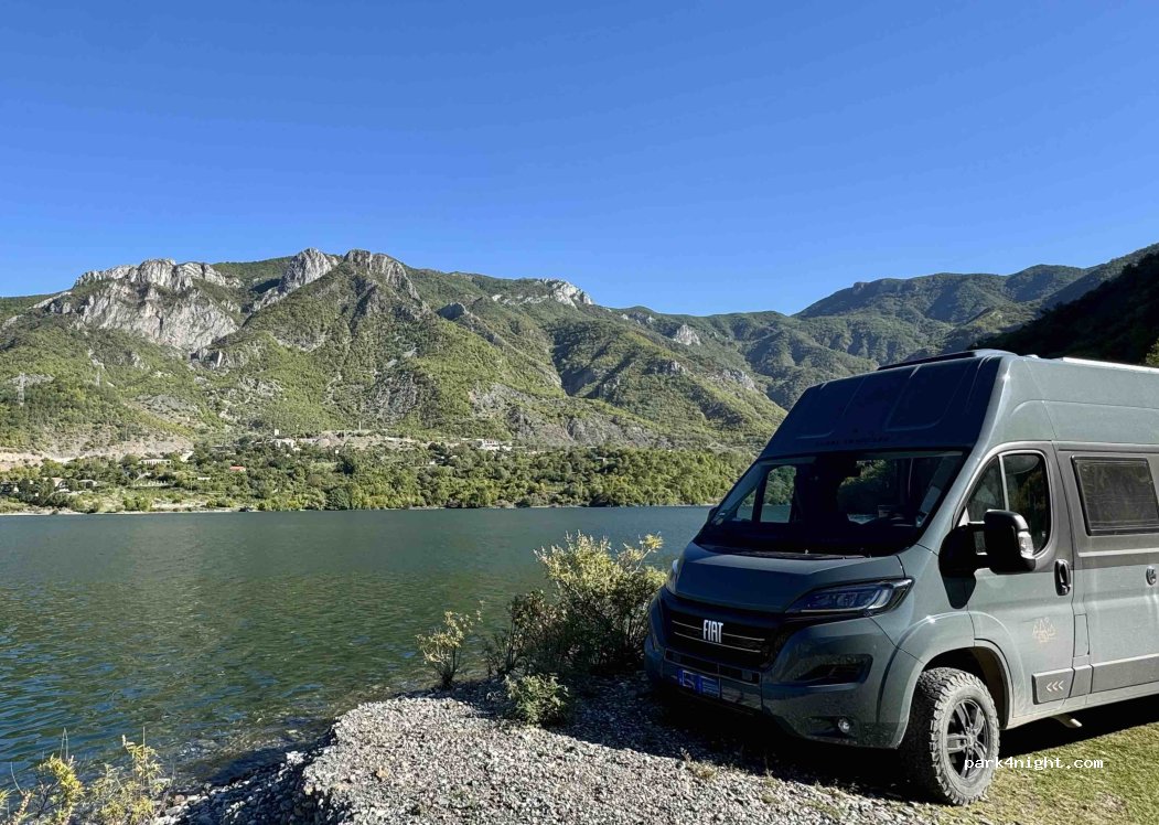 Sehr schöner ruhiger Ort direkt am Stausee mit Bademöglichkeit. Am Abend kommt ein netter Mann und sammelt pro Auto 10€ ein. Ist für das was geboten wird (nämlich wirklich nur ein Platz zum Parken) eigentlich zu viel. Wir sind trotzdem für eine Nacht geblieben vor der Fähre und haben eine sehr ruhige Nacht verbracht.