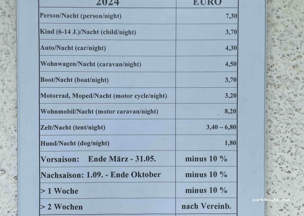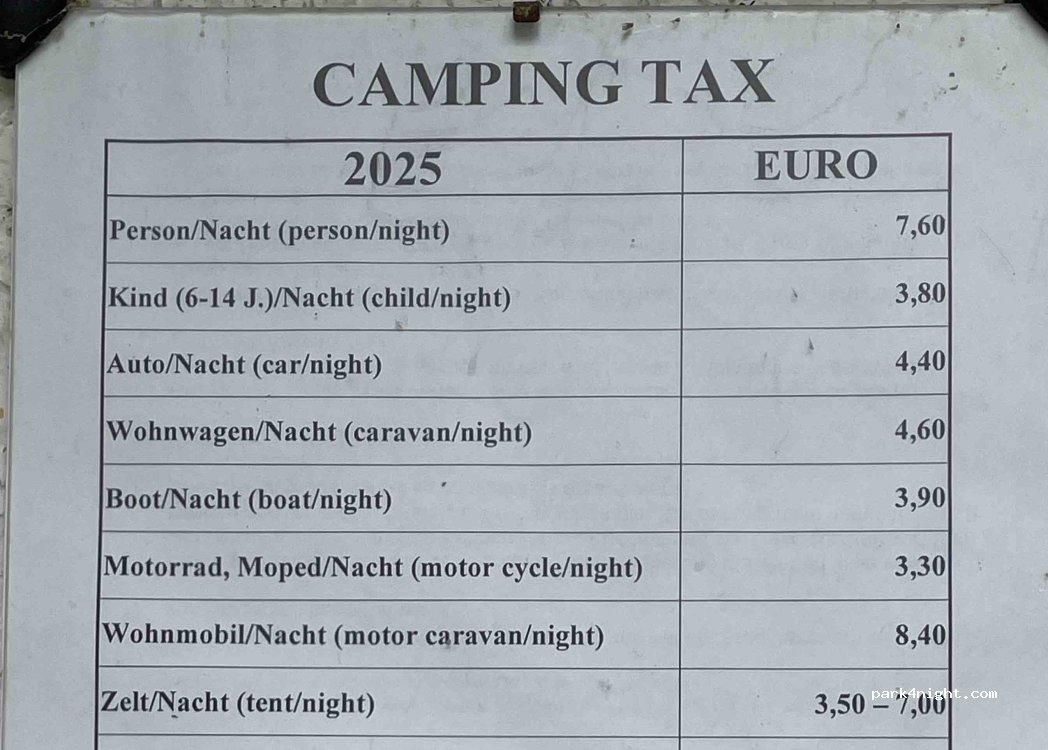Super Platz für eine oder auch mehrere Nächte. Für Womo und Wowa. Wiese schief. Nach viel Regen aufgeweicht. Lärm ist kaum zu hören. Essen lecker aber satt wird man nicht ! Minisalat zb 5e. Zum "Preisschild" kommt noch 4e pauschal Strom dazu und 2e Kurtaxe. Dusche/ Toilette alt aber okay. Kurz... Preise wie bei einem "echten" Campingplatz.