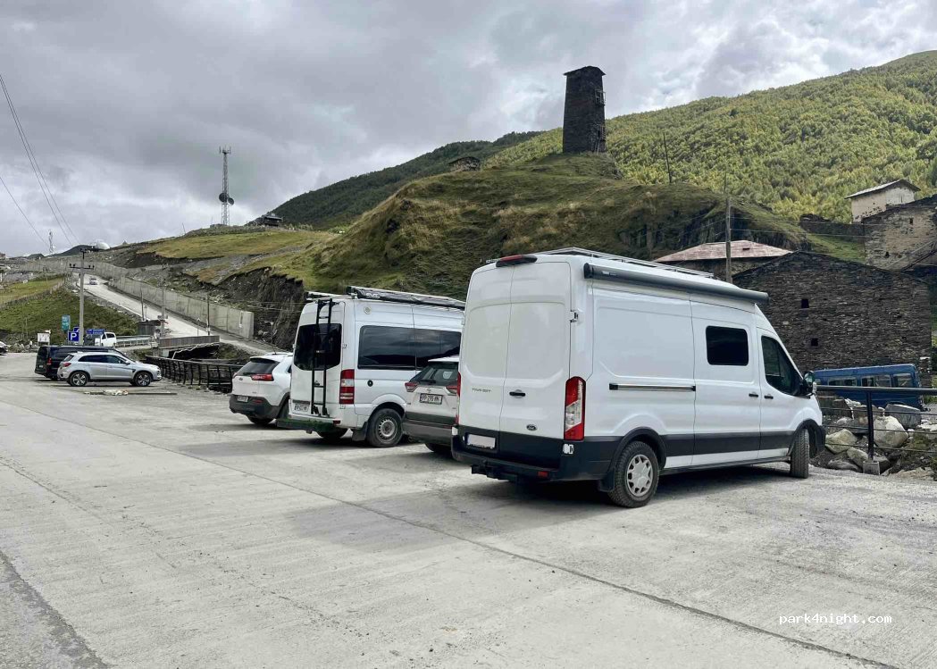 Ushguli parking lot without usable installations, for 1 big rig. Absolutely flat next to the house. 10 GEL.