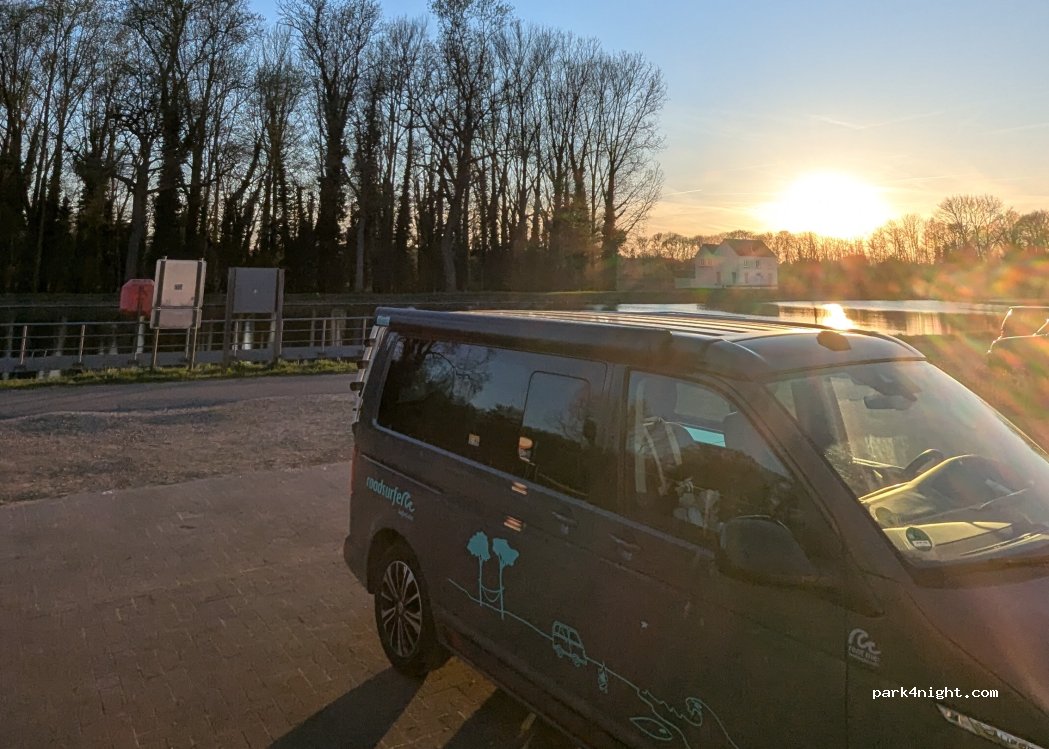 Heerlijk rustige plek aan het eind van een doodlopende weg (fietspad) langs het kanaal. Wat betreft de watervoorziening; de kraan heeft een T stuk waarvan 1 kant verbonden is met een slang die door een hek de loosput bereikt, de andere kant is te gebruiken voor drinkwater. Er zijn 4 zeer ruime genummerde plekken. Rustige nacht gehad afgezien van mede camperaars die hard met hun deuren gooiden...