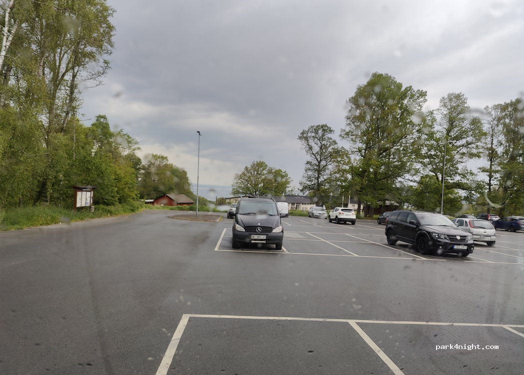 Big asphalt parking (100 passenger cars). No prohibition sign. Great view over lake Vättern. Recreation trails close by.