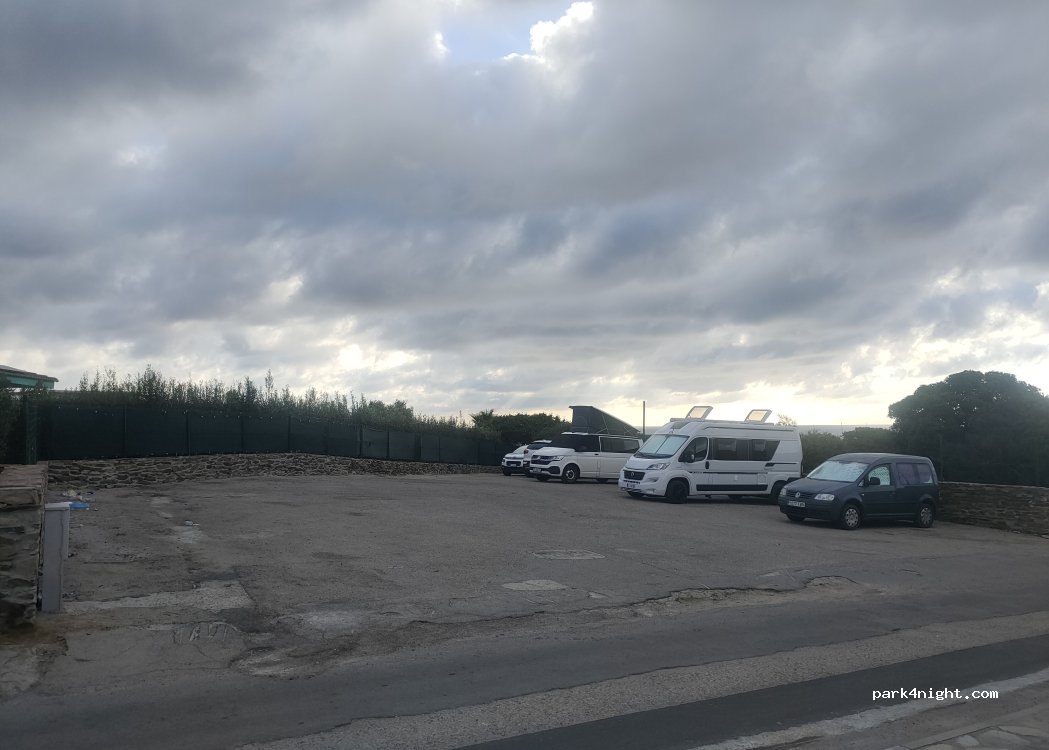 Parquing gratuito, muy tranquilo por la noche, spiaggia pelosa andando a 5 minutos, lástima que en todo el parquing hay un poco de pendiente y no hay sombras.