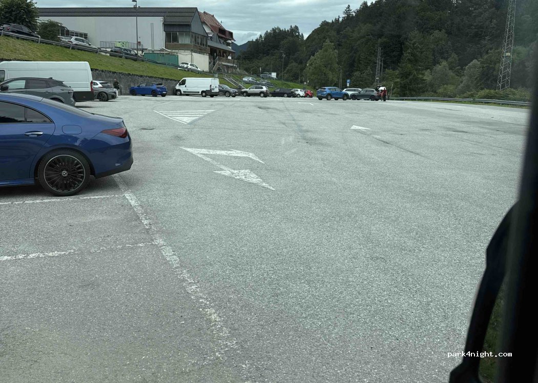Large parking lot no services near supermarket. Possible to stay overnight.