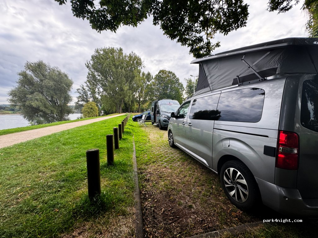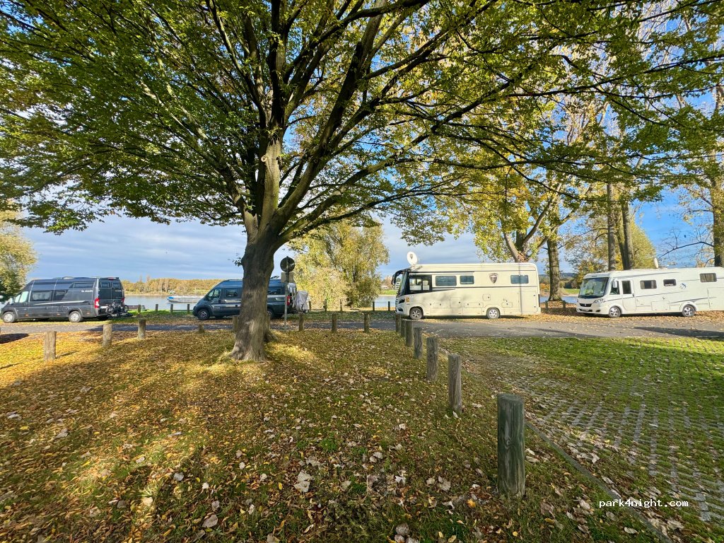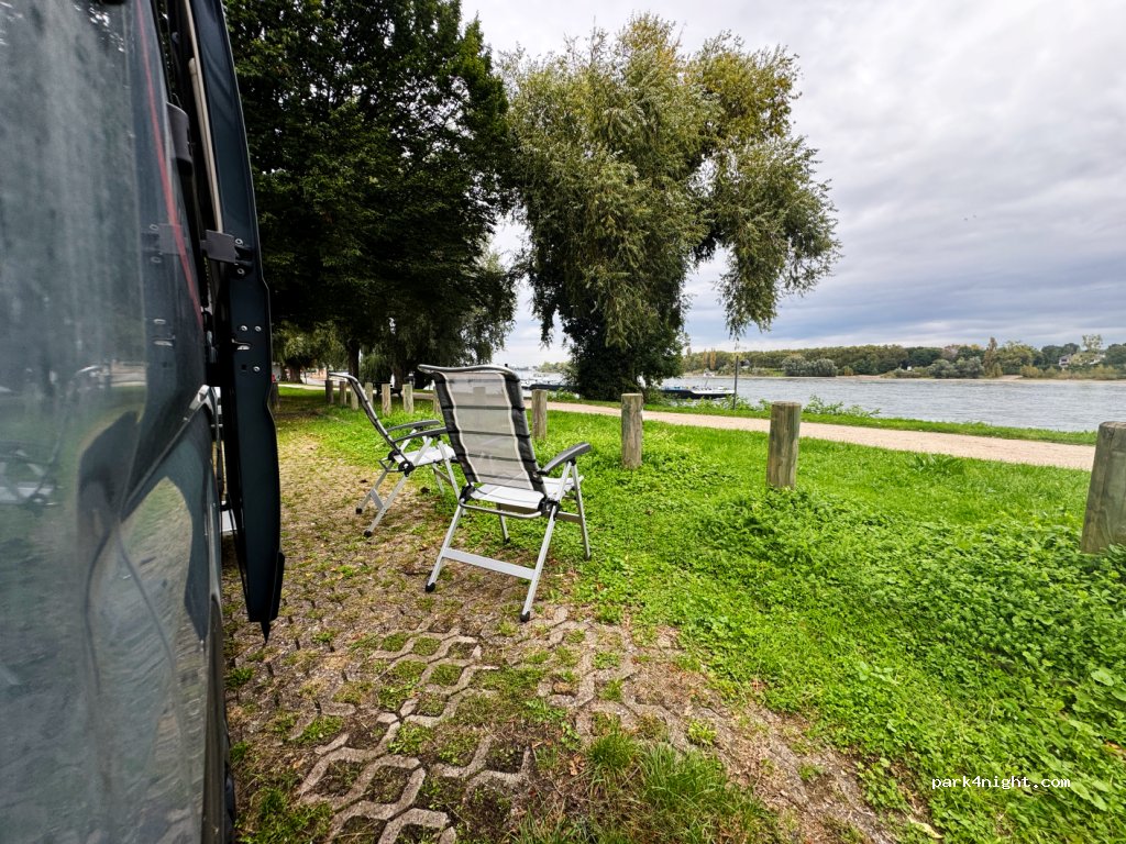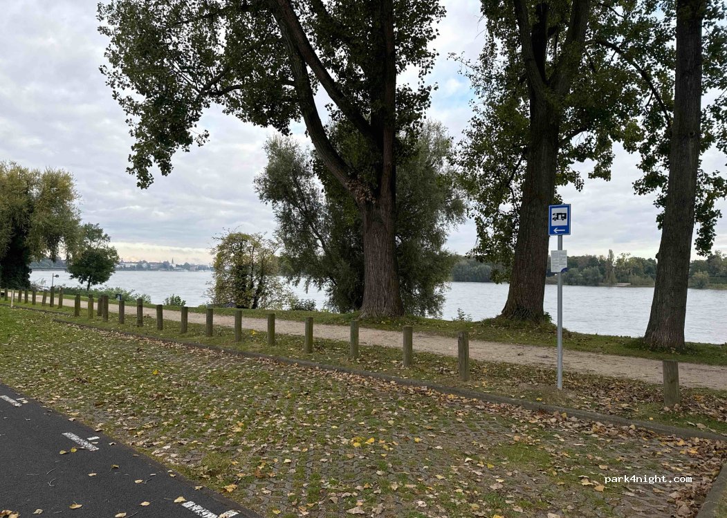 Prima plek om een nacht te verblijven. Er zit verder geen faciliteiten op, maar de locatie is mooi bij een park. Het is rustig. Wij hebben goed geslapen. De plekken aan het water waren al bezet, dus je moet denk ik vroeg zijn. 3km verderop museum Bonn technologie over ai erg leuk! Het park is ook mooi om rond te lopen