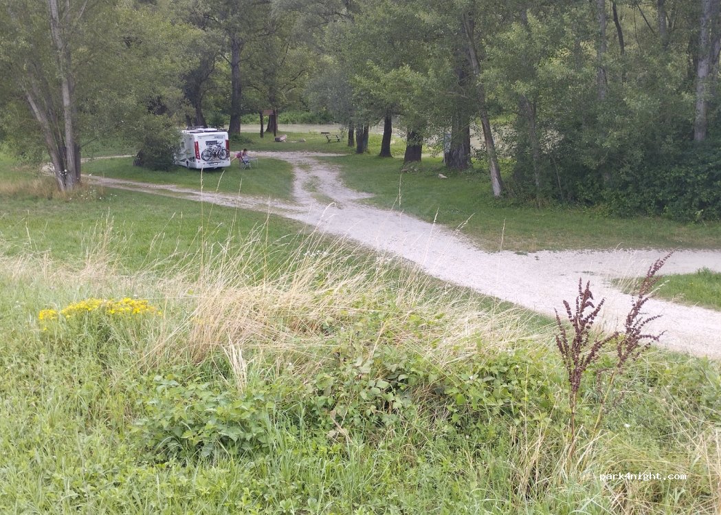 Très bel emplacement pour plusieurs véhicules, ombragé sur les bords d'un bras du Danube. on entend que le bruit de l'eau et des oiseaux.