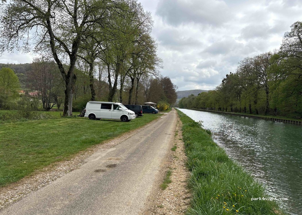 Très joli parking le long du canal. Nous avons passé une nuit calme. Barbecue et tonnelle à proximité et source d' eau potable près de la mairie. Nous recommandons.