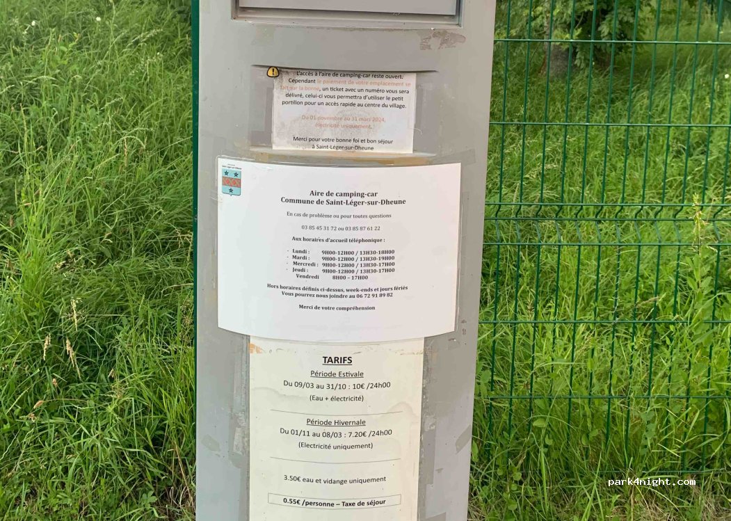 Belle aire pour nous camping caristes emplacement délimiter,eau,vidange, électricité le tout pour 8€ (0,55par jour et par personne de taxe séjour)tarif à ce jour !! en plus proche de la ville et tous les commerces merci à la commune