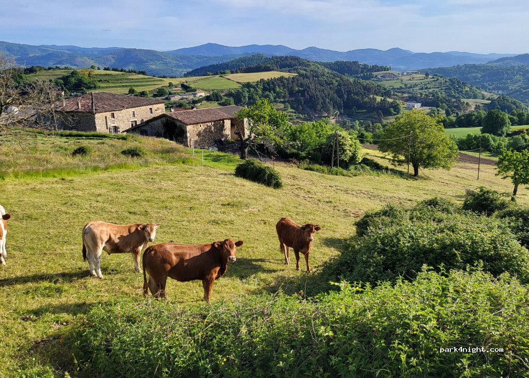 Belle vue, au calme avec le son des cloches des vaches . Les voisins sont sympa. Wc à disposition, tri des poubelles et eau potable à la fontaine.