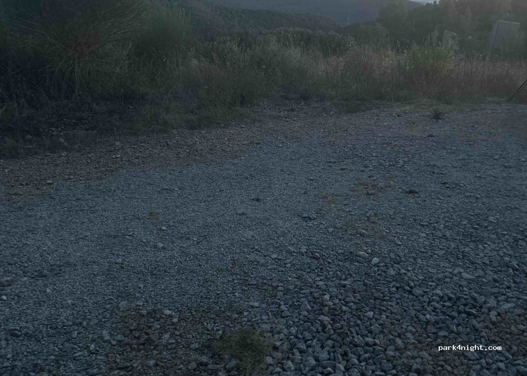 Kleiner Schotterplatz neben einer Funkstation. Der Weg geht von der Hauptstraße rechts weg, ist und wird schnell zur Schotterpiste. Schöne ruhige Aussicht auf einem Hügel über das Tal. Sehr ruhig.