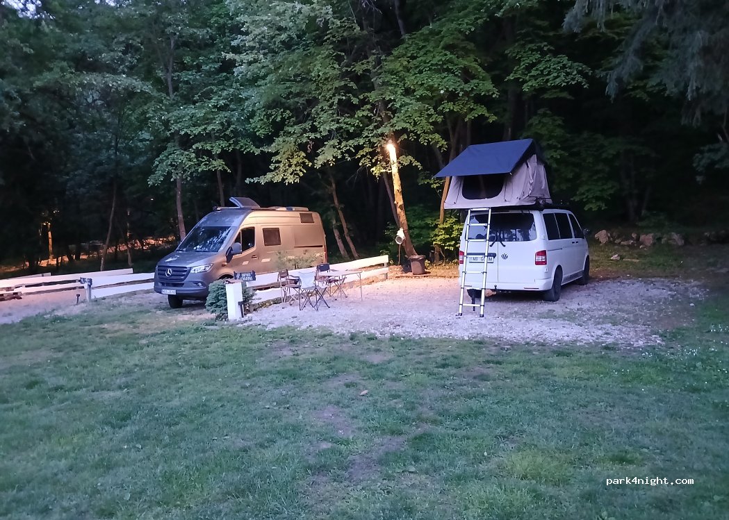 Sehr schön gelegener Campingplatz, mitten im Wald. Schattige abgetrennte Stellplätze. Die Betreiber sind super freundlich und hilfsbereit. Sanitäranlagen sind neu, sehr sauber und immer heißes Wasser. 25 € inklusive Strom für Wohnmobil und 2 Personen. Restaurant am Platz mit sehr guter Küche. Klare Empfehlung von uns.