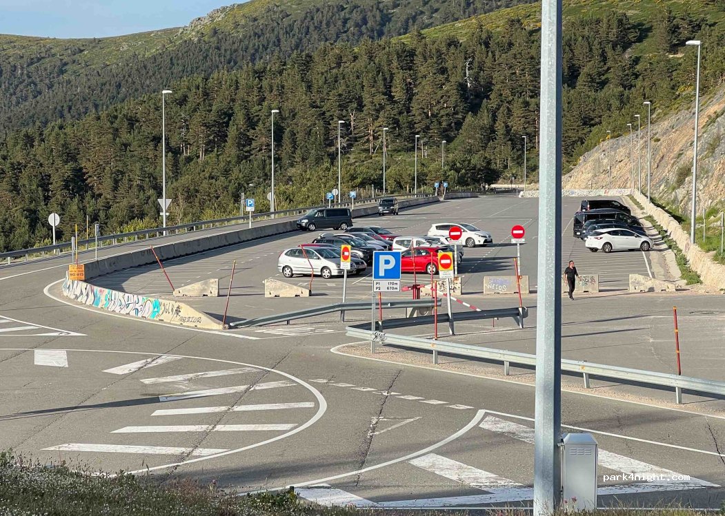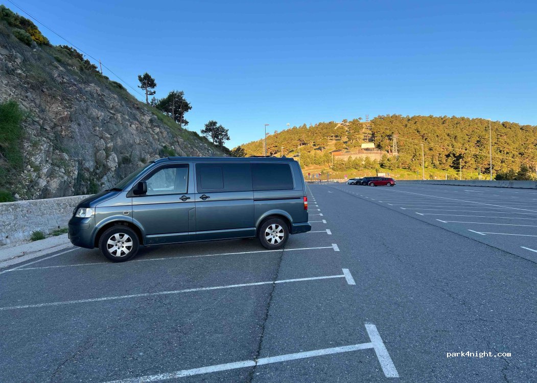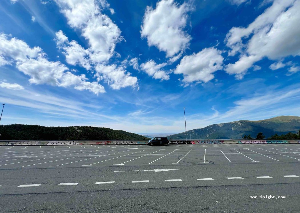 Somos de la zona, vivimos en furgo y hemos dormido bastantes noches en cualquier época en el parking del puerto. Puede ser un sitio genial o un sitio horrible, dependiendo de la fecha o si les da a algunos hacer trompos. Lo mejor es aparcar al principio pegado a la pista que sube a la Bola. Es cuestión de suerte, pero perfecto para disfrutar una gran nevada o una noche de verano calurosa.