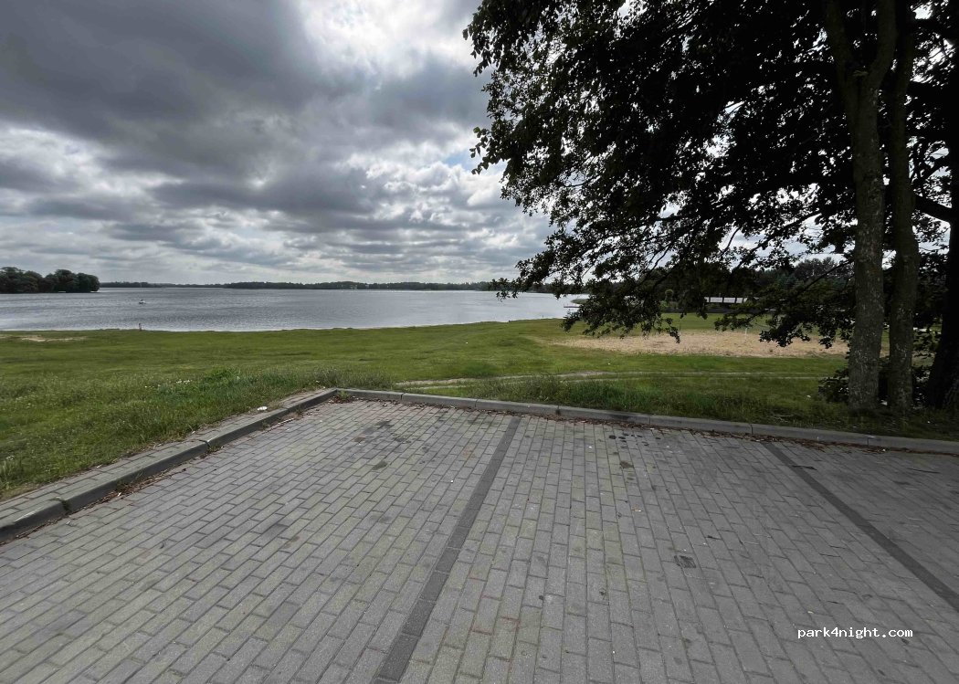 Spokojne miejsce z pięknym widokiem na jezioro. Polecam to miejsce! Parking oferuje świetny widok na jezioro, a okolica jest naprawdę spokojna i relaksująca. Dojazd prowadzi przez zadbane osiedle z ładnymi domami, więc czuje się bezpiecznie. Duży plus za infrastrukturę - są duże kosze na śmieci i toaleta przenośna, co jest bardzo praktyczne.