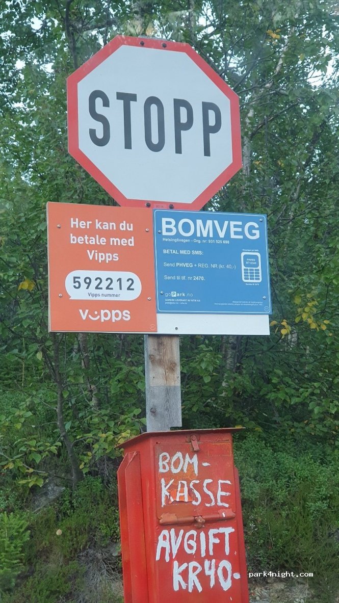 Wunderschöner Ort direkt am See mit Blick auf einen Berg. Der Platz ist eine größere Ausbuchtung der anliegenden Schotterstraße, welche in sehr gutem Zustand ist und sehr wenig befahren ist. Eine Feuerstelle ist direk am See, und es ist möglich schwimmen zu gehen (etwas steiniger Einstieg). Kosten 40 NOK. Diese können mit App oder SMS bezahlt werden.