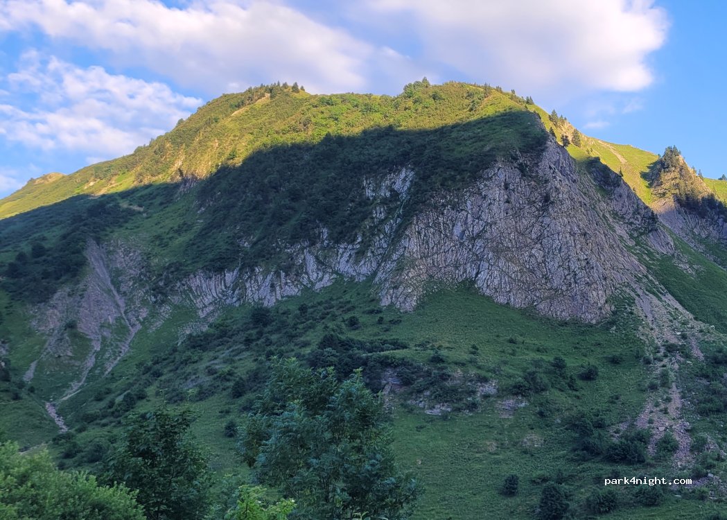 Très bon spot au pied de la falaise ! Tranquille , que des vaches belle vue . Du mouvement le matin parce que départ de rando et via Ferrara Grand parking plat .