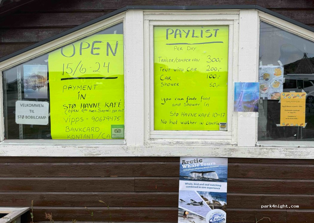 An sich könnte das ein guter Platz sein. Die Aussicht ist wirklich toll und die Lage zum Wandern oder für die Walsafari super. Aktuell ist dort aber bis auf eine Toilette und einen Mülcontainer alles zu. Dafür dann noch 200 Kronen zu nehmen, finde ich etwas hart. Da es keine Alternativen gibt, zahlt man halt.