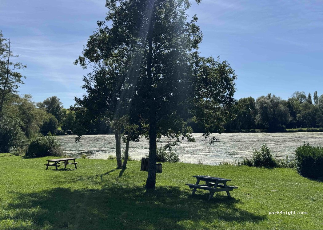 Spot tres sympa et calme en octobre. pk a 10 mètres du lac ou sebattent des canards. ensoleillé sur l'herbe. poubelles au bord de l'eau . qq branches en hauteur. vidange au camping.