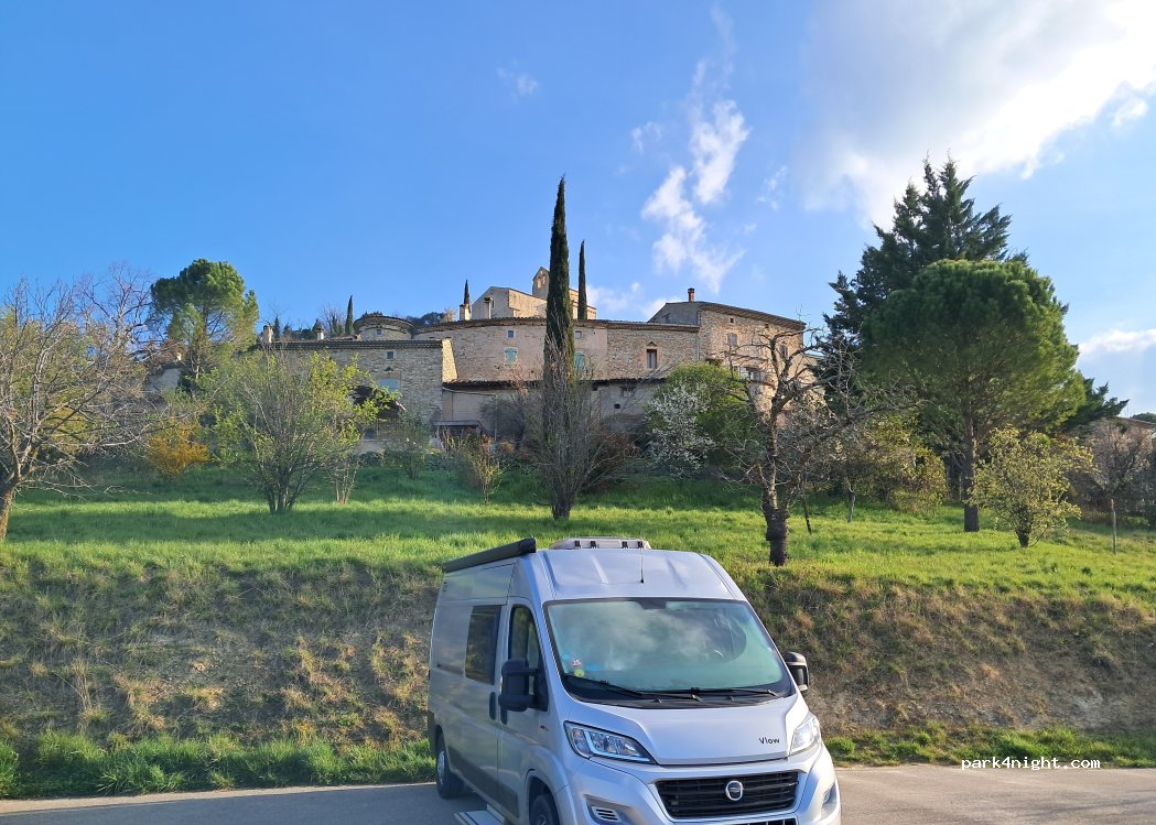Magnifique village perché - parking bien plat - vue extraordinaire - nous avons pu admirer la dernière pleine lune de l’année - pleine lune de l’esturgeon - merci à la mairie de nous avoir permis de passer une si belle soirée et si belle nuit !!!