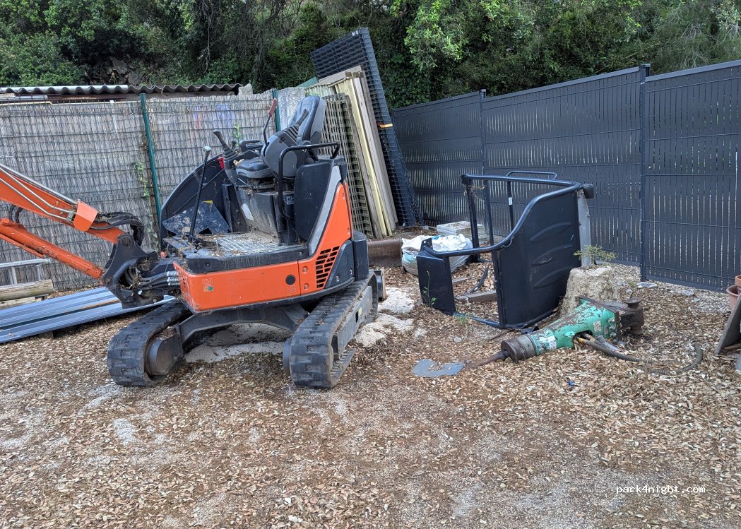 You'll also find a grey and black water disposal point (square cast iron plate) with a hose for filling your tanks. Restrooms only (please do not wash dishes inside, nor shave/use the toilet to keep the premises clean).