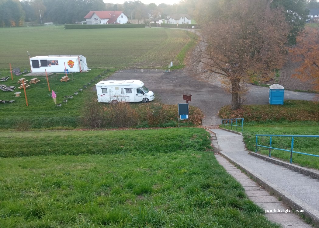 Całkiem spoko miejsce na nocleg w trasie. Cisza i spokój, od 7 zaczął się ruch sportowców.