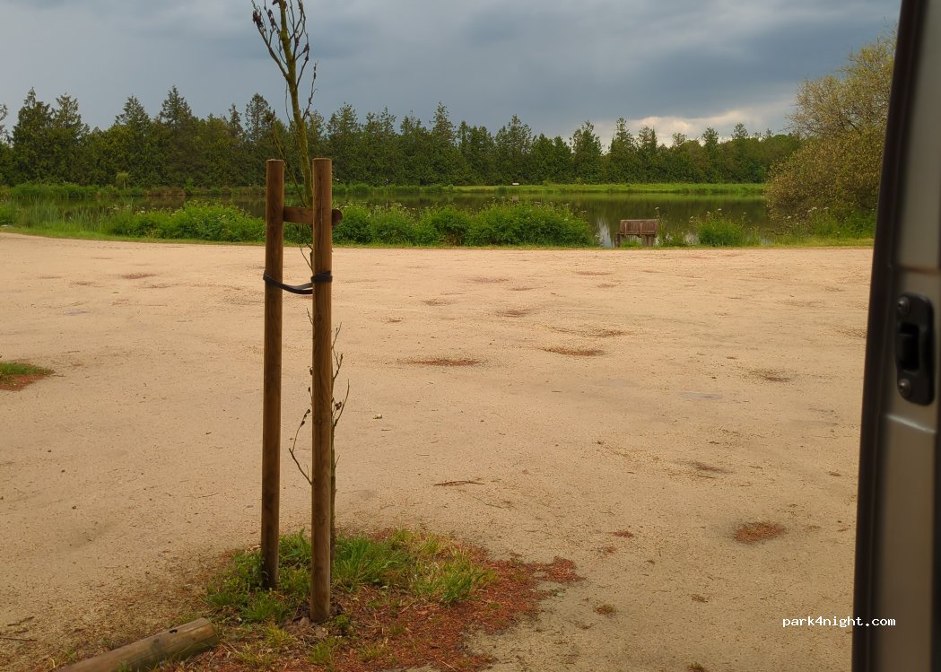 Lieu agréable sans services, au bord d'un étang et parcours sportif. idéale pour les amateurs de pêche. Nous y avons passé une nuit. Bruyant, avec la nationale qui passe à côté.