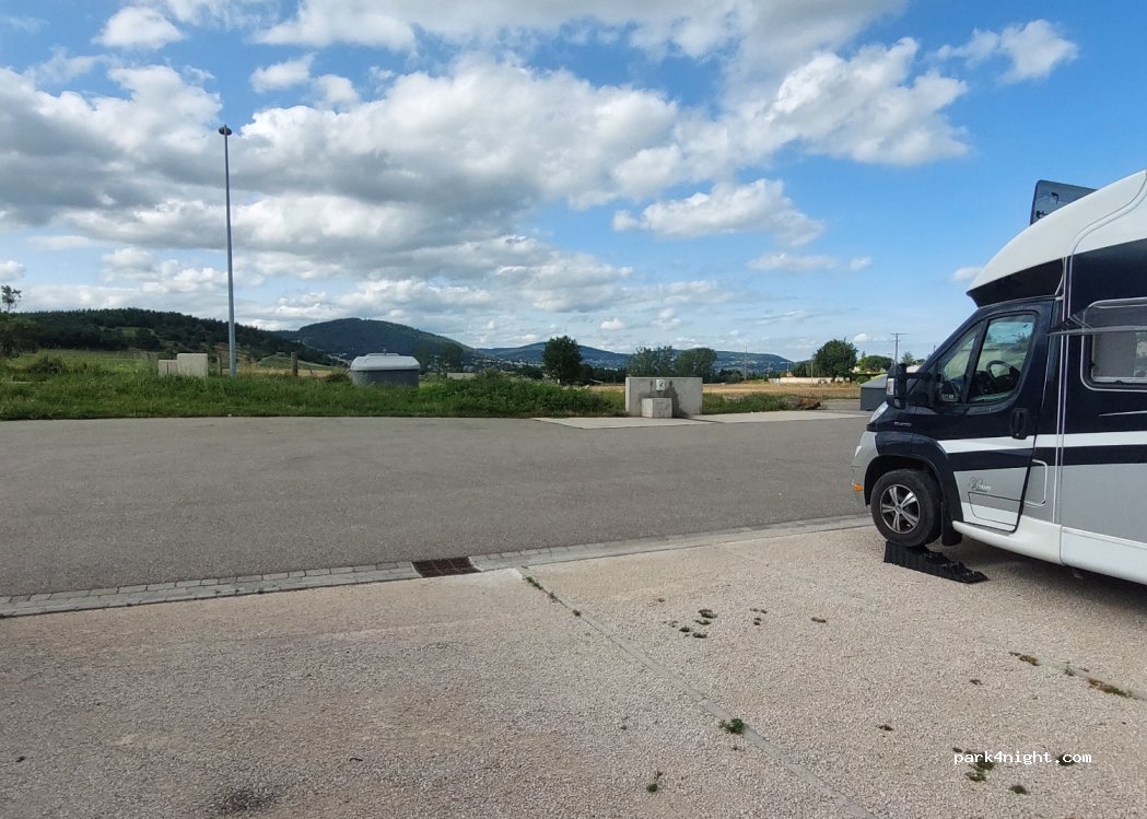 Un grand merci à la commune . Tout est gratuit!!!!6 emplacements plats, pourvus en électricité. En montant la petite route vers les arbres,un joli bois vous attend avec 3 circuits différents. Bonne promenade.
