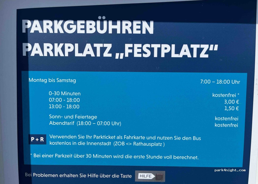 Parking 24 hours, 7 days, Sunday all day free Mon. - Sat. From 18.00 to 7.00 free! not far to the old town, to the AUDI Forum 2.1km