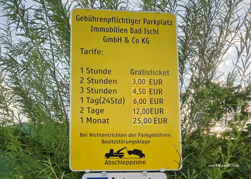 Pratique après avoir fait le lac de wolfgangsee et avant d'aller en direction de Hallstatt. Du passage mais on entend peu la circulation. Par contre un helico s'est posé tout près à 4h du matin, faut pas avoir le sommeil léger haha 4€ la nuit, ça vaut pas plus, ca reste un parking lambda, aucun service, mais pizzeria au top !