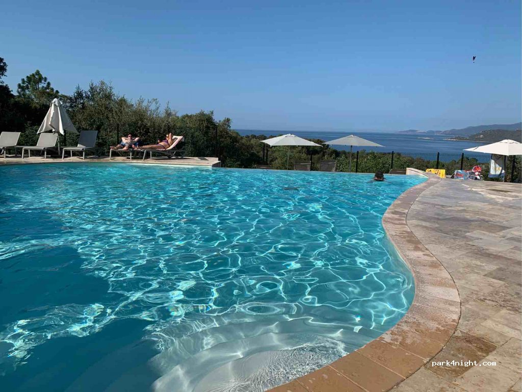 Naja, wer‘s mag… waren hier Anfang Mei mit Van, 2 Kindern und Hund; sind von Ajaccio extra hierher gefahren wegen der Guten Bewertungen und der tollen Aussicht/Pool. Die wenigen Stellplätze in Terrassenform sind toll, die Sanitären Einrichtungen auch. Aber das Camping besteht fast nur aus Mobilheimen, es war im Mei schon fast komplett voll, im Restaurant bekamen wir keinen Platz mehr, der Pool ist total klein und überfüllt, und bis halb 11 spielte laut Musik. Nicht unsere Vorstellung von entspanntem Urlaub in der Natur. Ver- und Entsorgung vom Van konnten wir nicht finden (vorhanden?); man sprach nur Französisch; sind nach einer Nacht etwas enttäuscht wieder abgereist.
