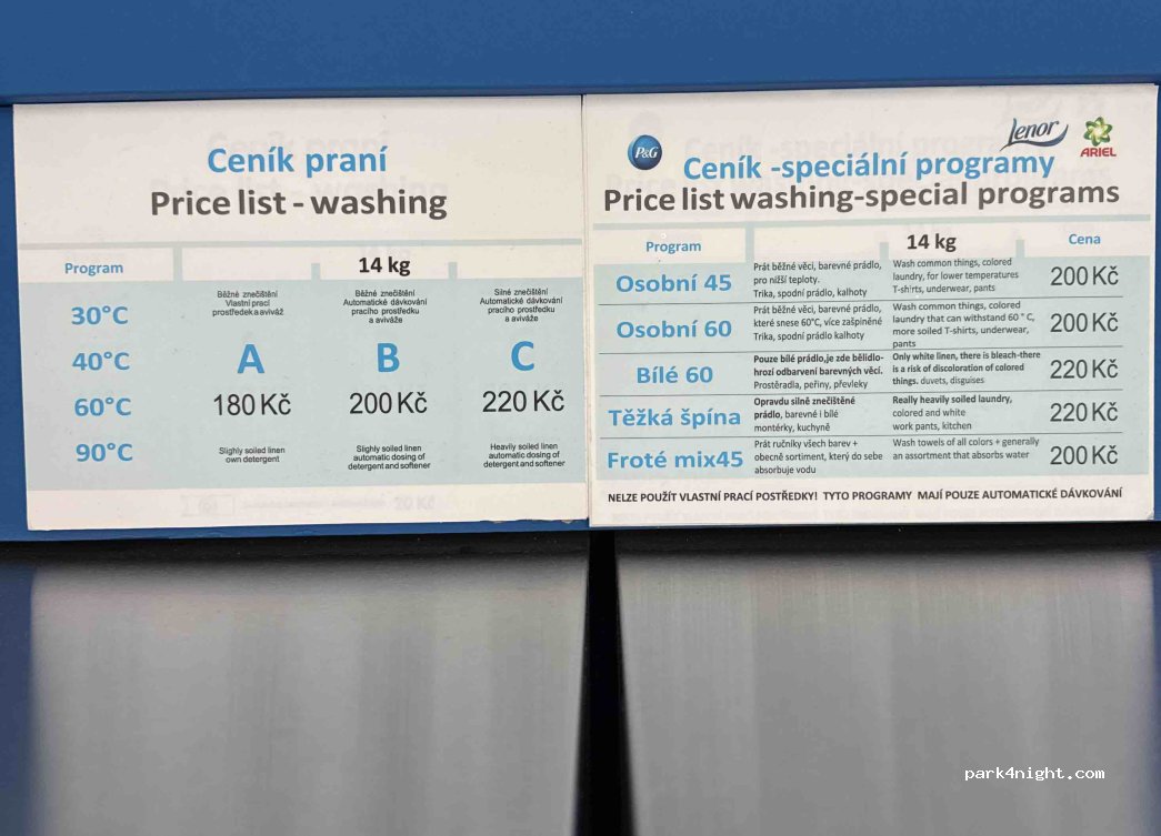 Hot showers, filling tanks with fresh water, and disposal of chemical toilets and greywater are FREE. The campsite has seven electrical hookups with multi-socket sockets. The campsite does not currently have a website, as it only recently reopened after 10 years. Prices are comparable to those of other Prague campsites.