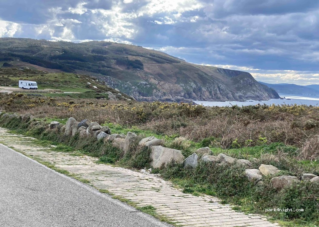 La zona para ACs es la primera y caben 3. Buen lugar para llegar a Estaca de Bares. Como se dice, los 2 ultimos Kms. son muy estrechos. Hay que tener suerte y no cruzarte con algún coche poco habilidoso.