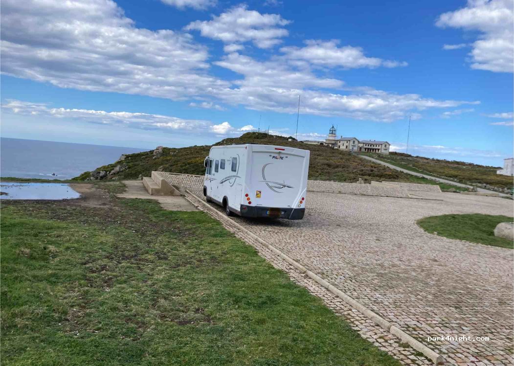 Parking del faro, bien nivelado. dormimos varias furgos y caravanas, y todo perfecto. aunque algunos cruzan las caravanas para tener mejor vista, ocupando varios sitios y vienen los problemas... nosotros no tuvimos viento, y magnífico para ver atardecer. por la noche muy tranquilo